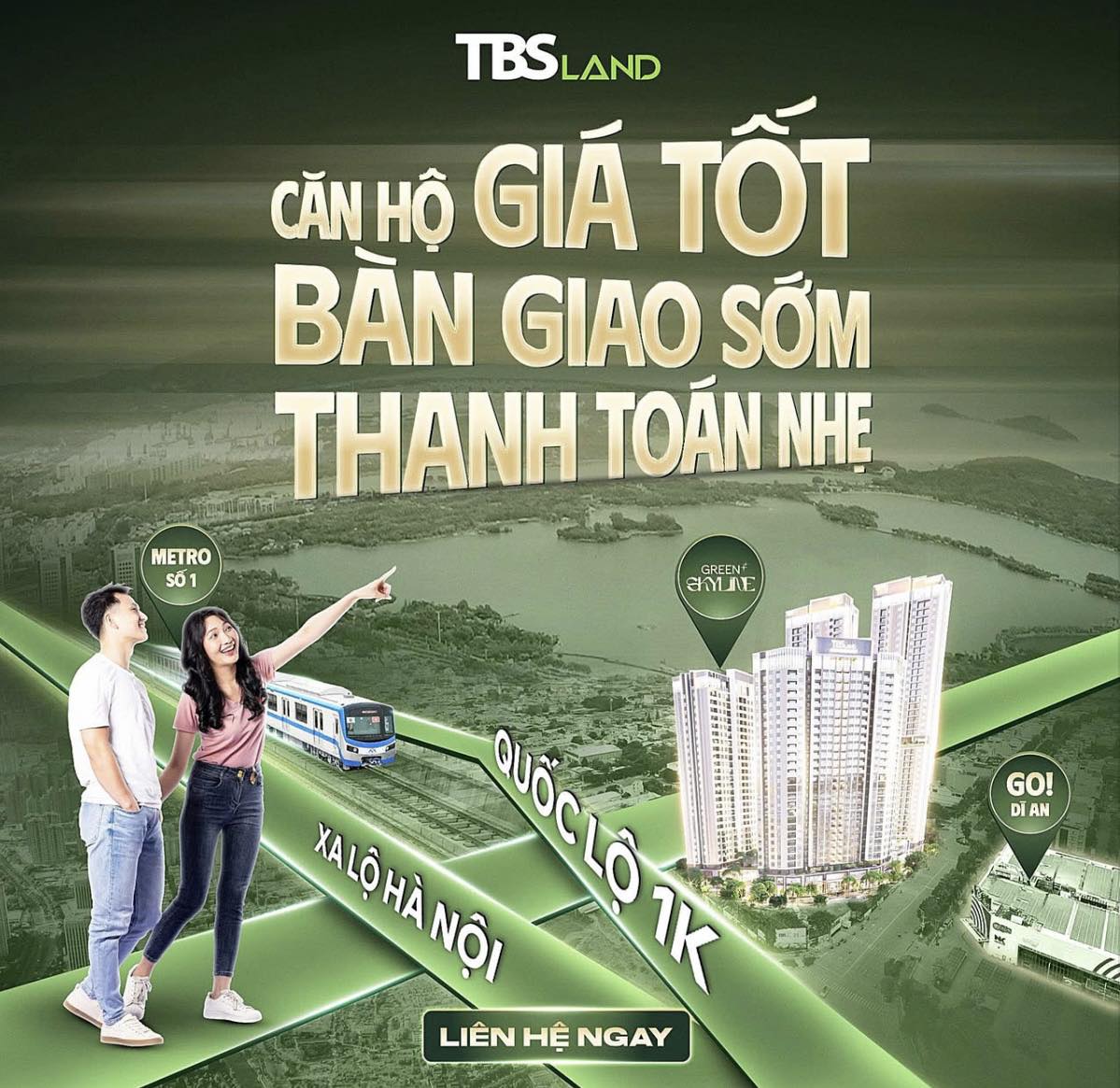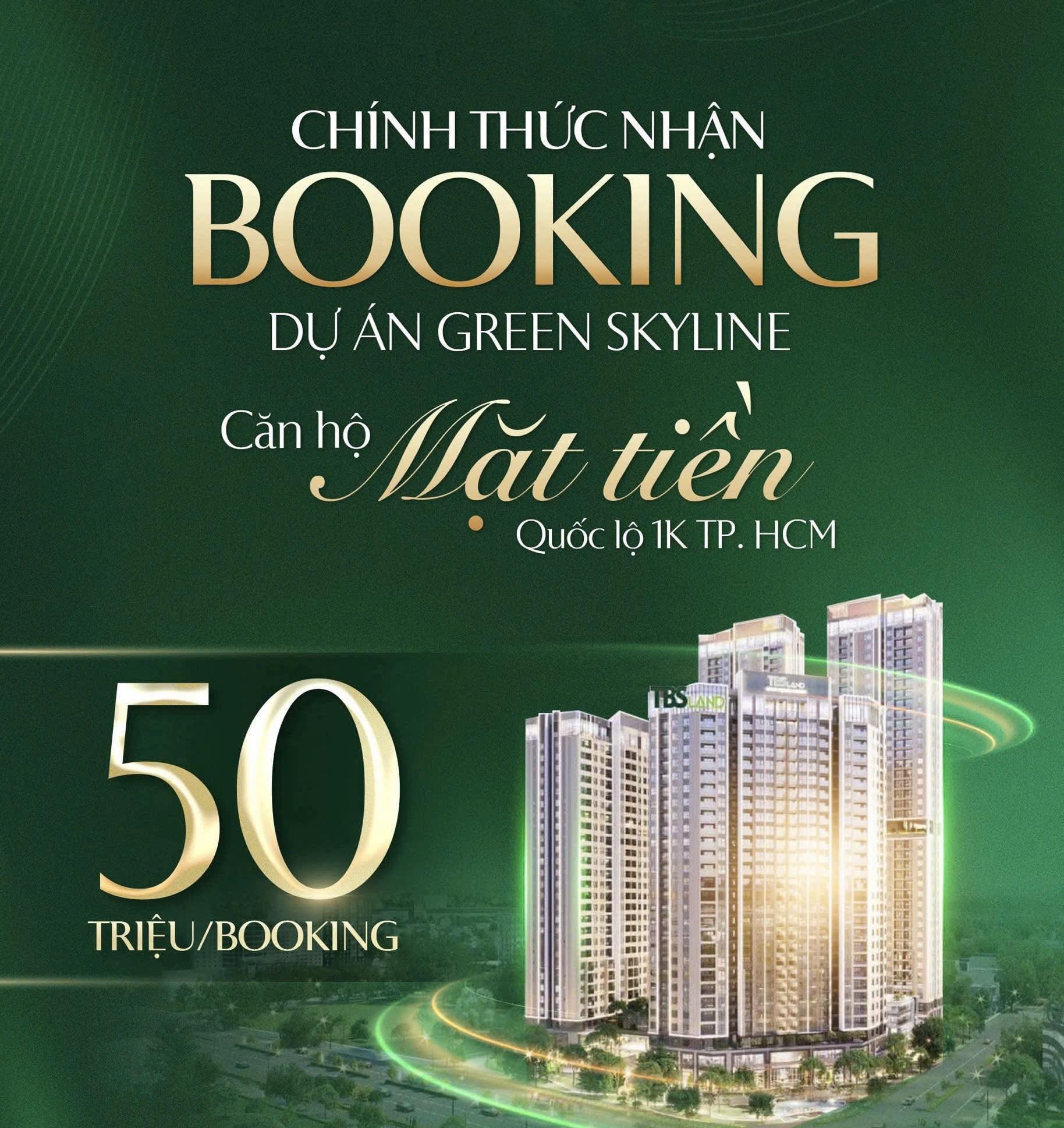 Dự án Green Skyline là khu phức hợp chung căn hộ cao cấp kết hợp TMDV được phát triển bởi chủ đầu tư TBS Land. Dự án xây dựng trên quỹ đất 1,32 hecta. Sở hữu vị trí toạ lạc đắc địa nằm ngay “Góc 2 mặt tiền” đường GS1 & Quốc lộ 1K, phường Đông Hòa, đối diện Big C Dĩ An, ngay khu dân cư sâm uất bất nhất TP Dĩ An, Bình Dương.