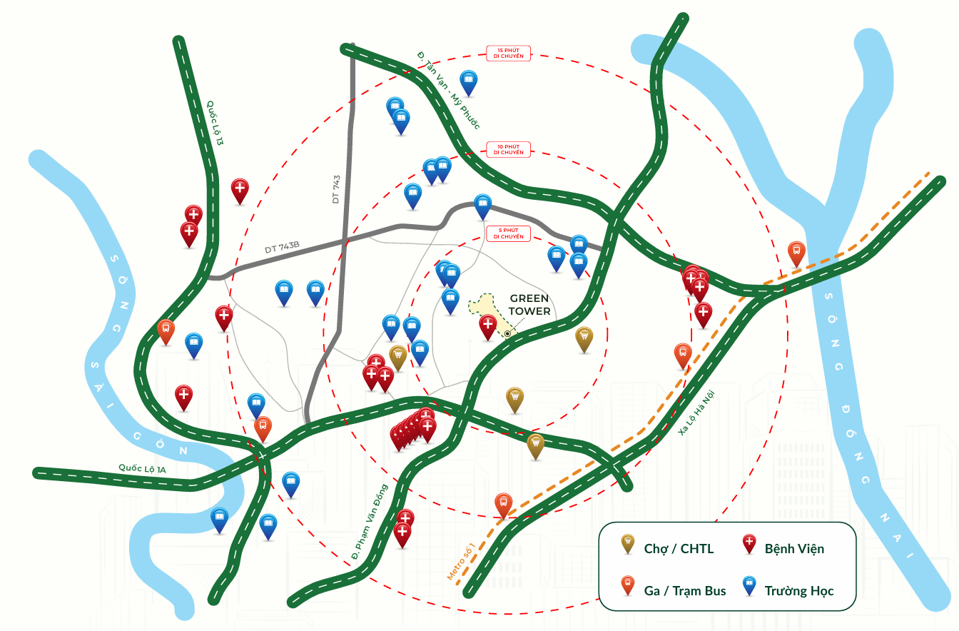- Dễ dàng kết nối với các khu vực lân cận như Đồng Nai, Bình Phước qua các tuyến đường quan trọng như Quốc lộ 1A, Xa lộ Hà Nội